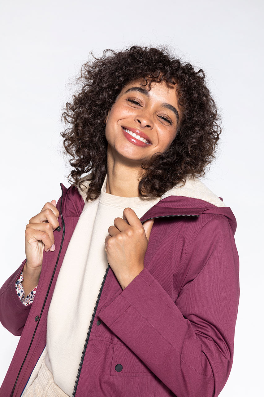 Avec notre modèle Gabriac, restez bien au chaud tout au long de l'hiver. Cette parka à capuche doublée en fausse fourrure moutonnée vous procurera un confort ultime pendant les journées froides et pluvieuses. Son coloris prune original s'accorde facilement avec vos tenues, ajoutant une touche de couleur à vos looks automnaux.